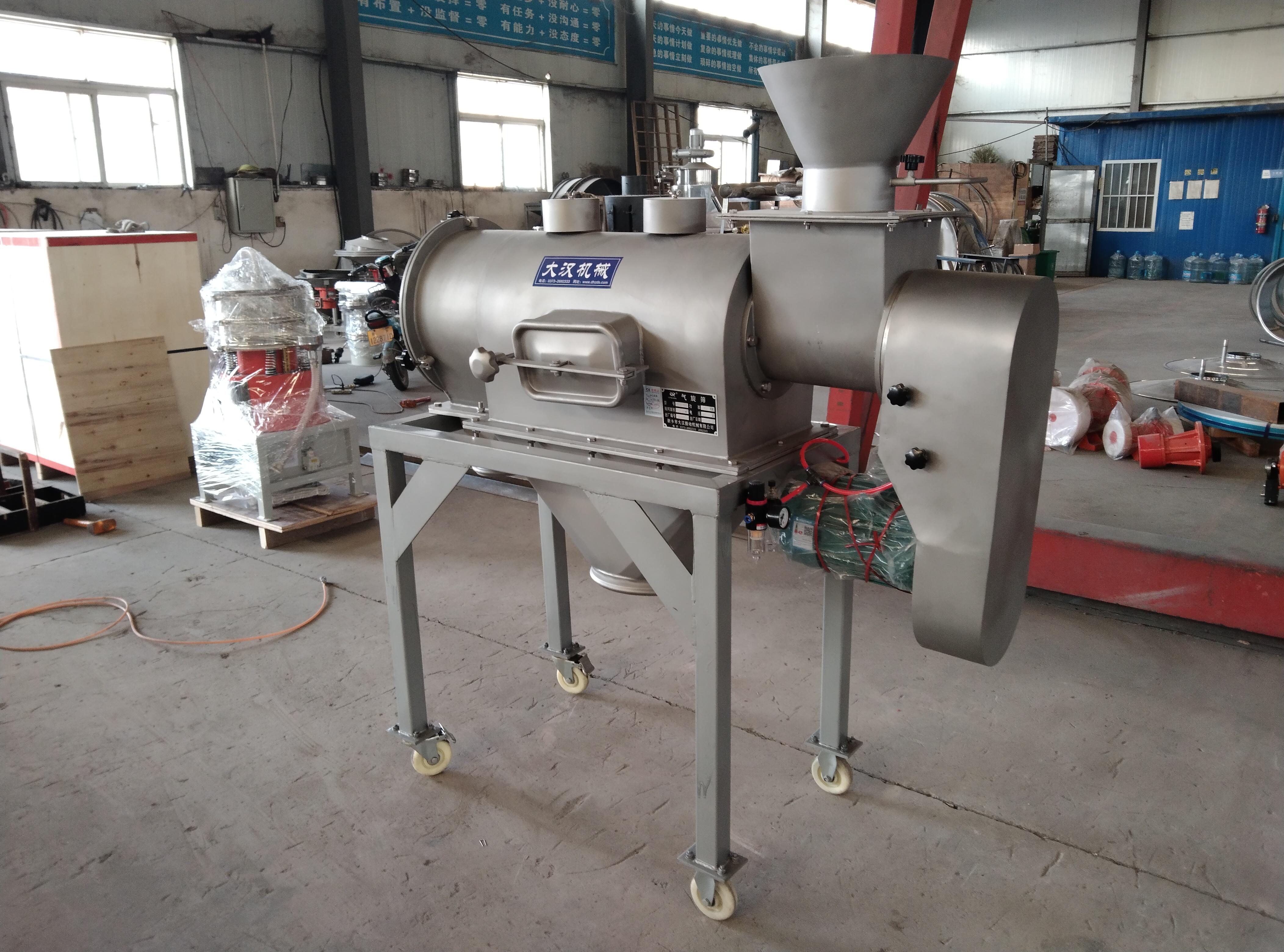 氣流篩的類型不同在適用場景中有所差異。立式結構緊湊、效率高,適合快節(jié)奏、空間有限場景:化工用于塑料粉等分級,食品對面粉等除雜,醫(yī)藥對中藥細粉等精細篩分,還用于建材滑石粉、新能源電池材料篩分,適配中等規(guī)模高效生產(chǎn)線。臥式篩分精度高、物料適應性強,適合高篩分質量或特殊物料場景:新材料用于納米粉等分級,醫(yī)藥對易團聚粉體分散篩分,食品對可可粉等易吸潮物料篩分,化工對顏料粉等高精度篩分,也用于粉塵回收、冶金金屬粉分級,適配小規(guī)模高精度或特殊物料生產(chǎn)。