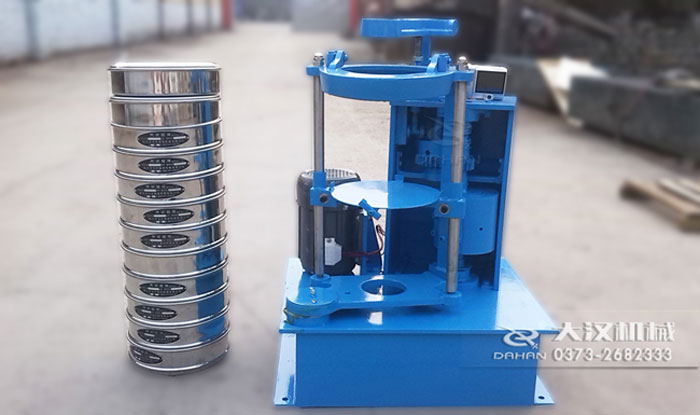 電機(jī)帶動(dòng)齒輪通過同步帶傳動(dòng)到主軸上,經(jīng)齒輪變速后主軸按要求的轉(zhuǎn)速轉(zhuǎn)動(dòng),主軸帶動(dòng)偏心輪使滑板做往復(fù)運(yùn)動(dòng),帶動(dòng)安裝在滑板托盤中的試驗(yàn)篩左右搖動(dòng),同時(shí)主軸帶動(dòng)頂桿齒輪轉(zhuǎn)動(dòng),變速后頂桿齒輪通過凸輪頂擊頂桿,頂桿使拍錘上下拍擊試驗(yàn)篩上蓋,使得試驗(yàn)篩、分樣篩中的物料往復(fù)和上下振動(dòng),使小于試驗(yàn)篩篩面網(wǎng)孔的物料顆粒篩分進(jìn)下層試驗(yàn)篩,如此層層篩選,使每層試驗(yàn)篩內(nèi)只留相同粒度的物料。達(dá)到不同粒度的分離并確定此物料的粒度組成。